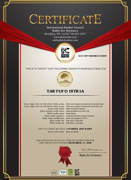 We our proud to present our exclusive kosher pareve line wich combines fresh truffles from our italian and israelian truffle hunters. This unique products are certified by international kosher council by Rabbi Zev Schwartz. This certification is made by KIC (International Kosher Council).